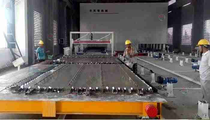 PC固定模臺(tái)柔性生產(chǎn)線既有固定模臺(tái)生產(chǎn)線的低設(shè)備投入,又具有自動(dòng)化生產(chǎn)線的高度機(jī)械化,自動(dòng)化特點(diǎn)。