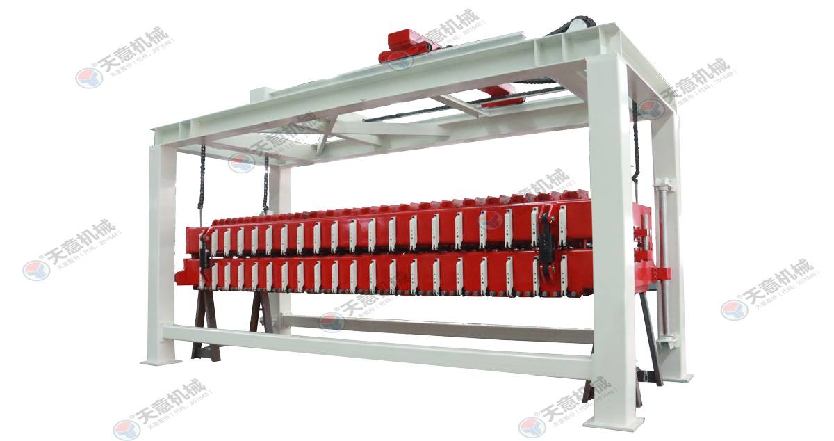半成品翻轉(zhuǎn)臺(tái):用于切割完成的坯體在蒸養(yǎng)前去除頂部及底部廢料;